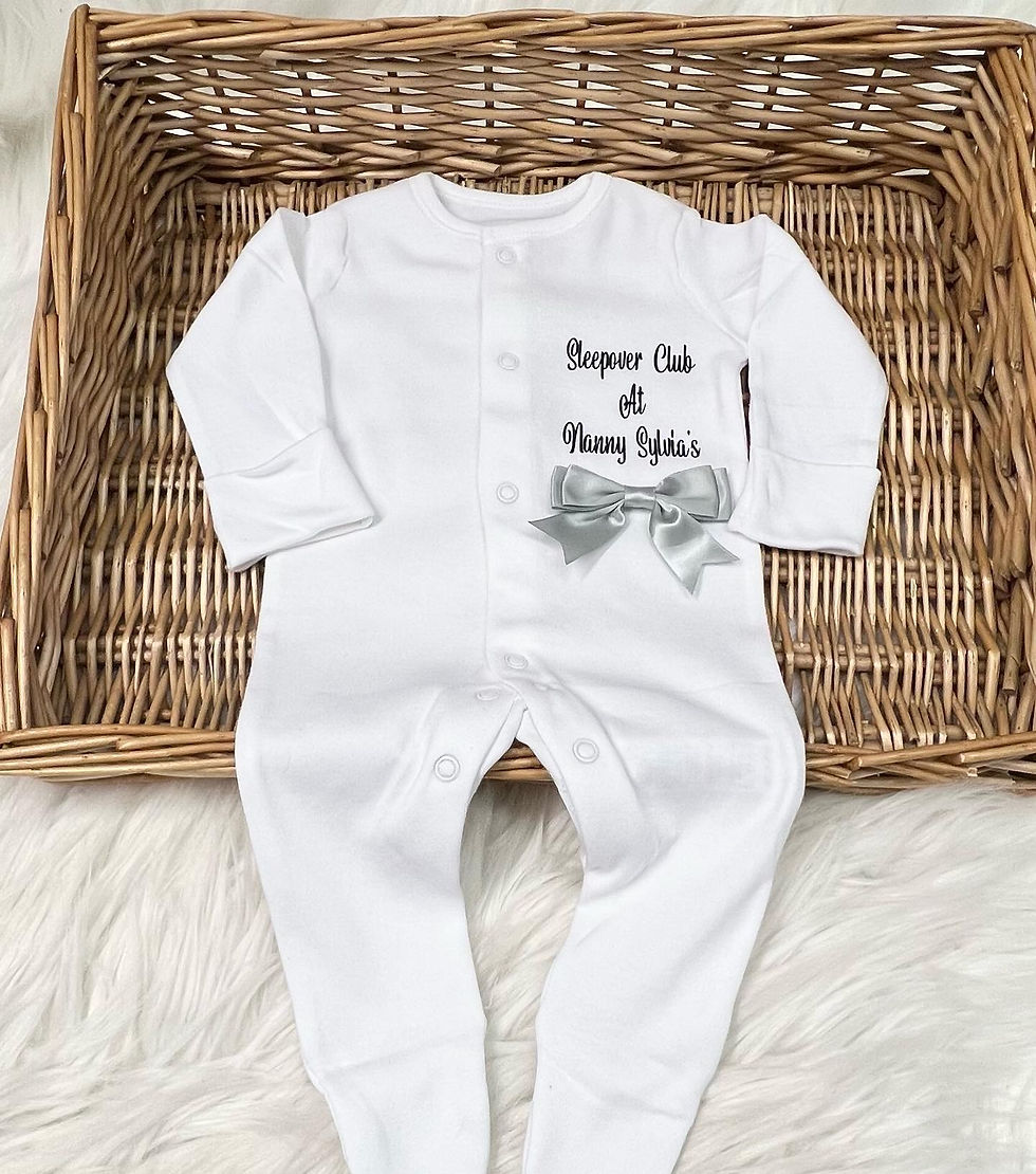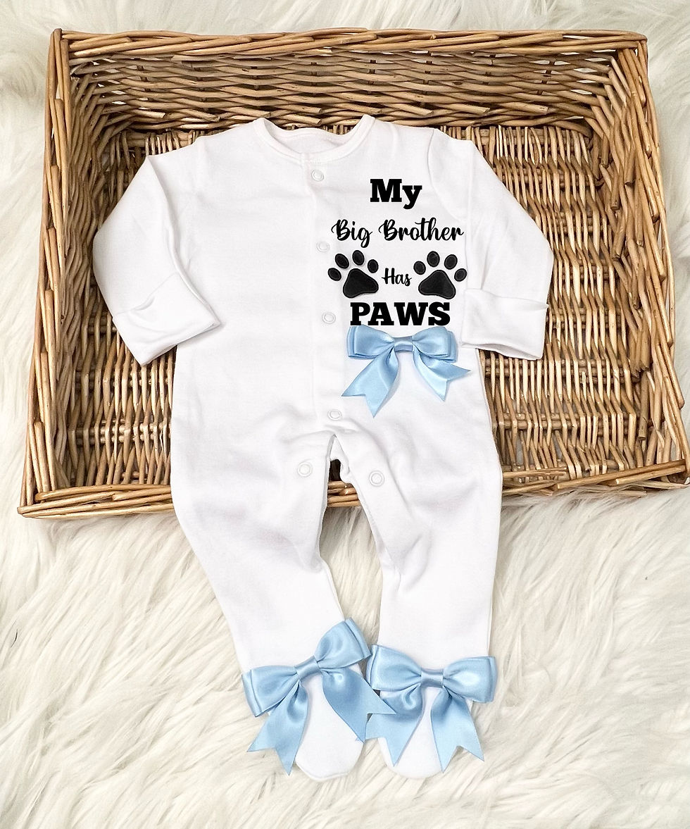 Siblings have PAWS Baby sleepsuit Bows personalised